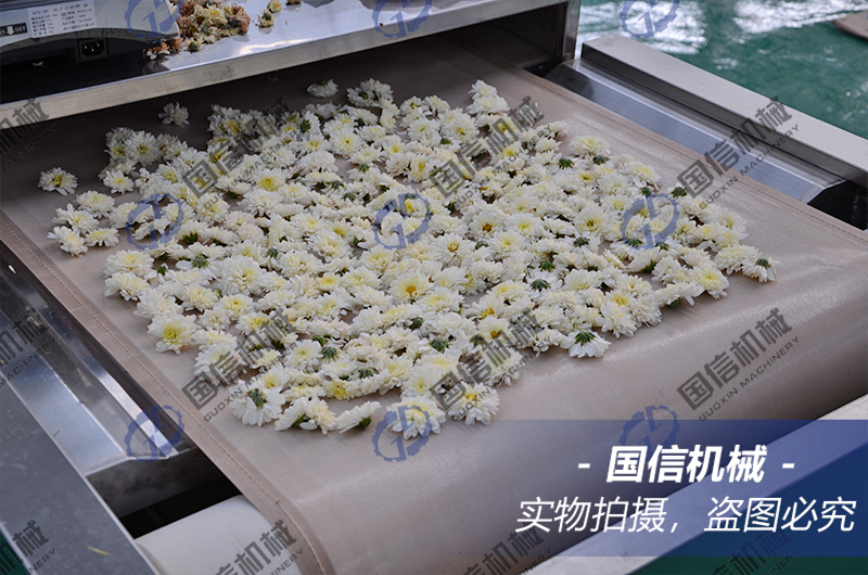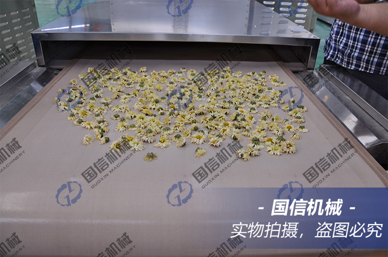 顧名思義,這款設(shè)備采用的就是微波來(lái)進(jìn)行烘干和殺青,設(shè)備集殺青、殺菌、烘干于一體,一機(jī)多用,工作原理是以微波的高頻震蕩作用,使菊花從內(nèi)而外的干燥,殺青效果好,營(yíng)養(yǎng)物質(zhì)保留完整,烘干后的菊花色澤鮮艷,不變色,賣相好。