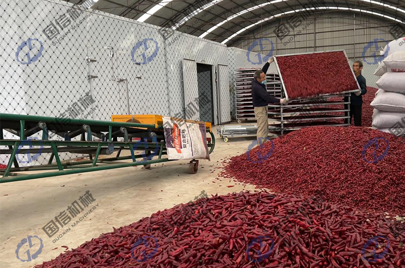 辣椒烘干主要是采用了大型全自動(dòng)辣椒烘干設(shè)備或空氣能熱泵辣椒烘干房,正常情況下,影響高品質(zhì)辣椒烘干的因素主要有以下幾個(gè)方面: