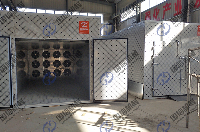 金絲皇菊烘干房采用的是靜態(tài)烘干模式,通過熱源裝置,讓烘干房內(nèi)的溫度升高到制定值,對擺放在房內(nèi)的菊花進行干制。烘干房的智能化控制系統(tǒng),可以對溫度和濕度進行精準控制,以達到金絲皇菊烘干的目的。金絲皇菊烘干機是由熱泵主機,保溫板房、交叉換熱器、循環(huán)風機、排濕系統(tǒng)、排濕風機、控制系統(tǒng)、推車、托盤等部分組成。