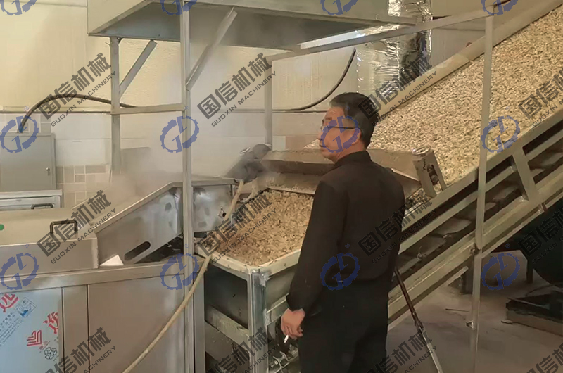 高溫煮燙:煮燙是干燥加工的關(guān)鍵環(huán)節(jié),是著色保質(zhì)的保障。高溫煮燙可在不銹鋼(預(yù)煮)漂燙殺青機(jī)中進(jìn)行,漂燙蒸煮機(jī)的蒸煮時(shí)間溫度都可以調(diào)節(jié),蒸煮過(guò)程中不需要人員操作,省工省力!百合分季的含淀粉不一樣,蒸煮時(shí)間也不一樣,煮燙的時(shí)間以原料略軟,掰斷鱗片時(shí)有清脆響聲,有較強(qiáng)彈性為度。 高溫煮燙的操作要掌握好,熱燙溫度和時(shí)間達(dá)不到,在干燥過(guò)程中就會(huì)氧化褐變;如果熱燙過(guò)度,鱗片煮爛,干燥后則鱗片容易破裂或形成魚(yú)鱗片,色澤加深,影響制品的外觀質(zhì)量。