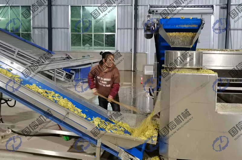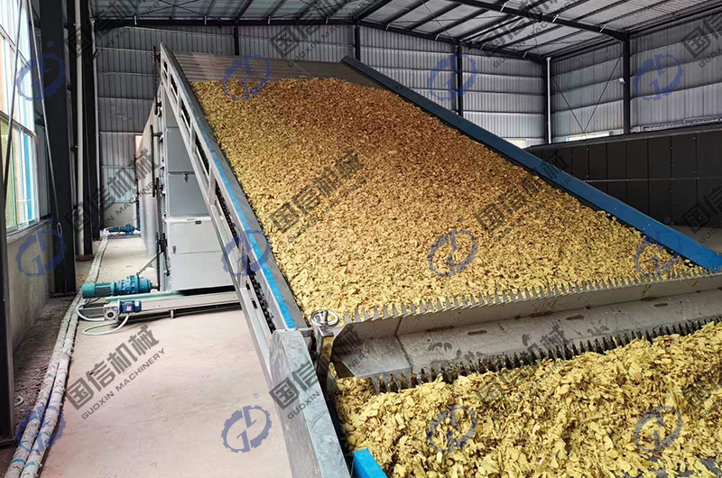 在貴州惠水縣,劉老板自己開設(shè)了生姜加工帶烘干企業(yè),每天的烘干需求量非常的巨大,但是由于環(huán)保政策的影響,燃煤不可用,經(jīng)過(guò)協(xié)調(diào)后,當(dāng)?shù)氐纳镔|(zhì)顆粒正好可以使用,為此,我們向客戶提供了一套可以日處理鮮貨達(dá)15噸以上的大型生姜烘干生產(chǎn)線設(shè)備。