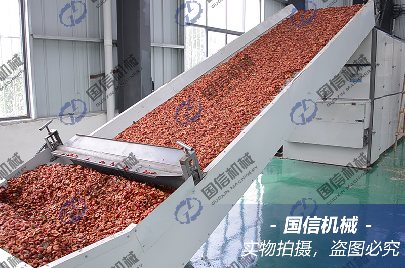 導讀:網(wǎng)帶式山楂烘干機適用于山楂片的烘干加工,可以按客戶的要求,根據(jù)加工量大小來設計流水化生產(chǎn)。