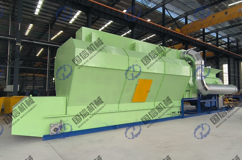 成套的垃圾分類設(shè)備包括振動給料機.輸送機.無軸垃圾滾筒篩.風(fēng)選機.磁選機(可選)等。振動給料機:將舊垃圾送到給料輸送機;無軸垃圾滾筒篩:進(jìn)一步篩選舊垃圾;封閉式空氣分揀機:對舊垃圾中的輕質(zhì)垃圾進(jìn)行分類。磁選機(除鐵器):用于篩選磁性金屬垃圾。主機采用無軸滾筒篩,不同于傳統(tǒng)滾筒篩,結(jié)構(gòu)創(chuàng)新,處理能力更強,能耗更低,使用壽命更長。支撐輪采用國家標(biāo)準(zhǔn)實心橡膠輪,動能損耗小,噪音小,更環(huán)保。傳動機架由兩側(cè)雙驅(qū)動,動能強,運行更穩(wěn)定。密封箱設(shè)計,消除二次粉塵污染,使陳腐垃圾分離更加綠色環(huán)保。
